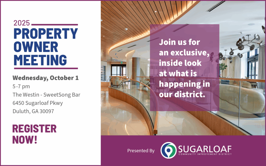 Sugarloaf CID property owners are invited to join board members and elected officials for an exclusive, inside look at how the CID is creating place and building value across the district. Hear the latest updates on projects that are enhancing the Sugarloaf experience and strengthening the area’s appeal for businesses, employees, and visitors. This event is by invitation only.