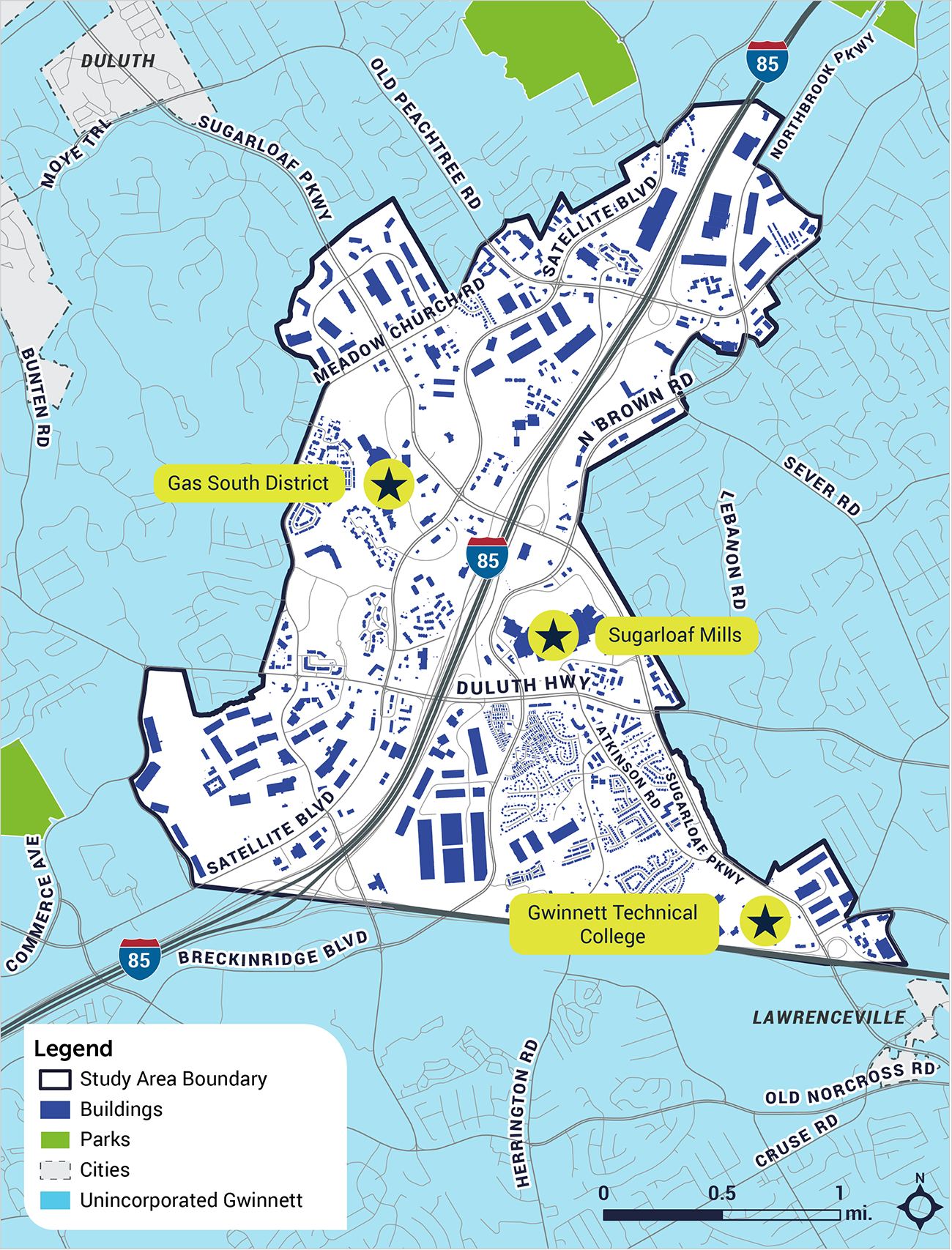 The Sugarloaf Small Area Plan will shape the future of this area for the next 20 years. A joint planning process led by both Gwinnett County Planning and Development and the Sugarloaf CID, the Sugarloaf Small Area Plan will guide future development policies and infrastructure investments, fostering a vibrant community that attracts residents and visitors, supports business, and provides unique experiences.