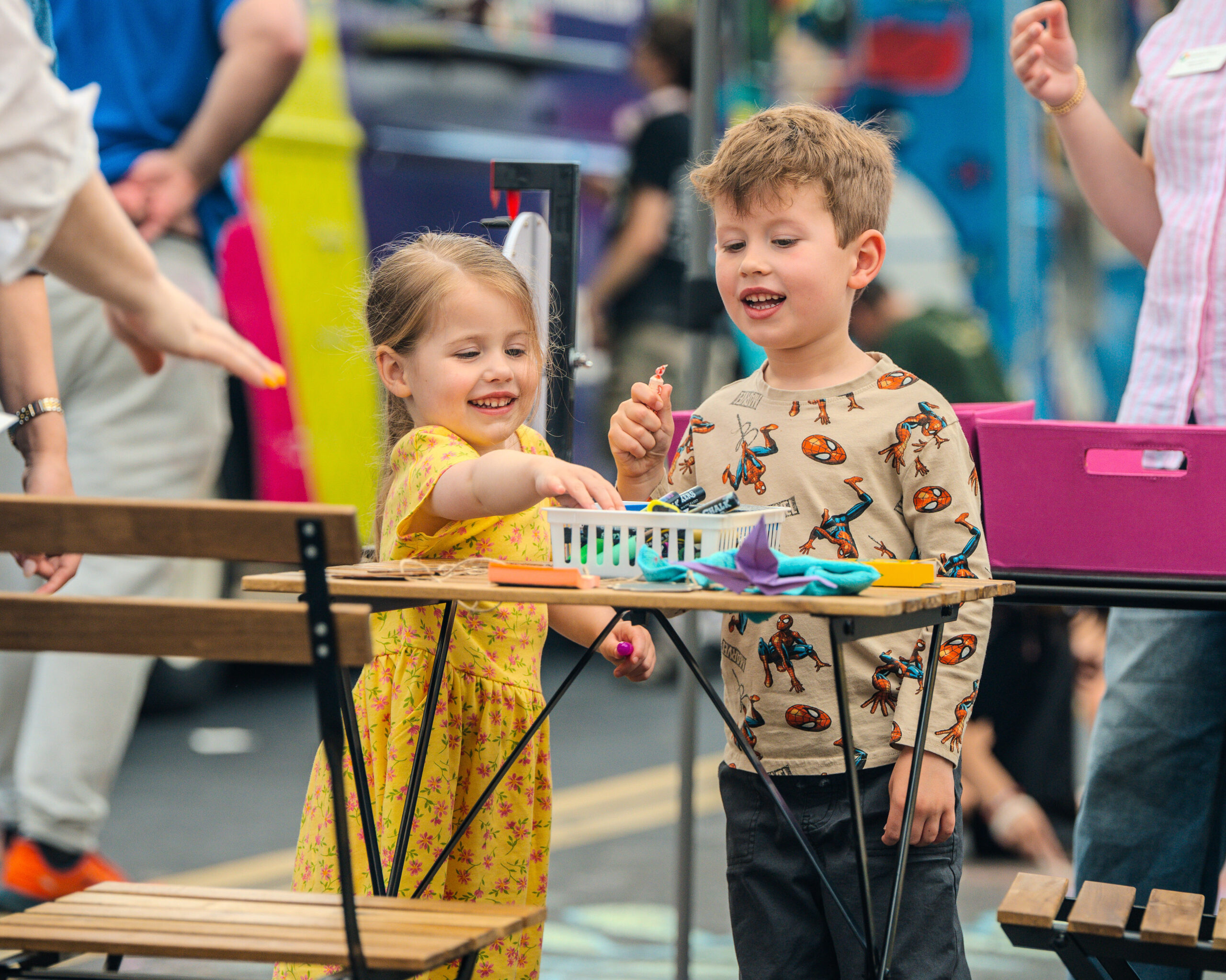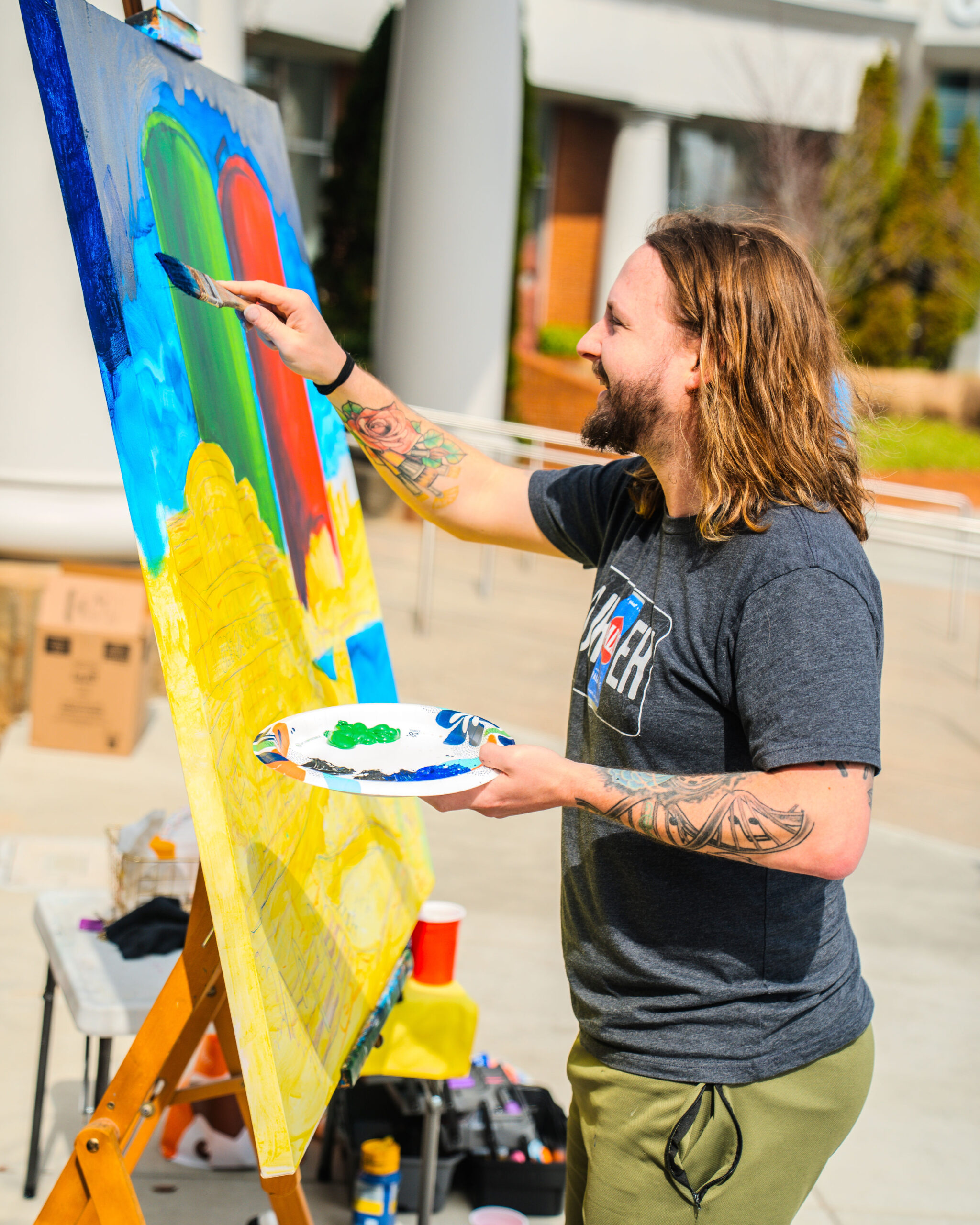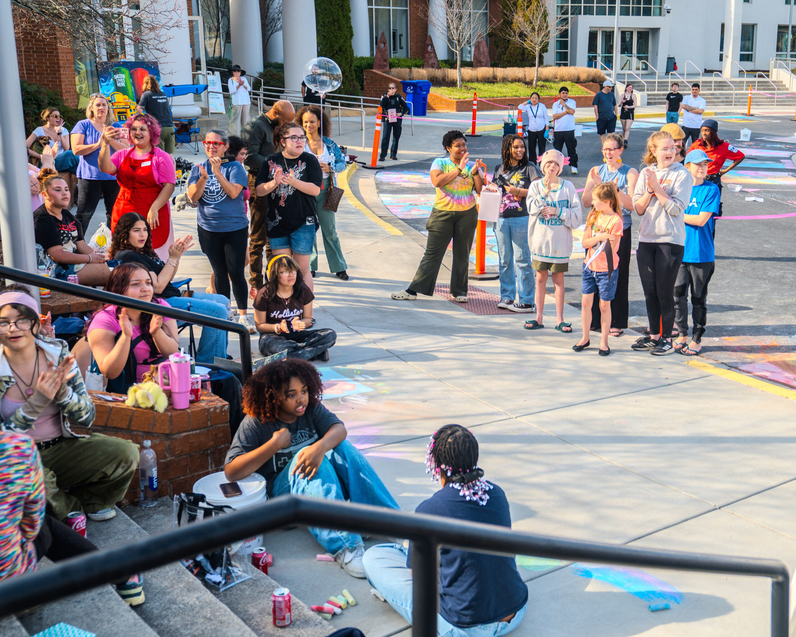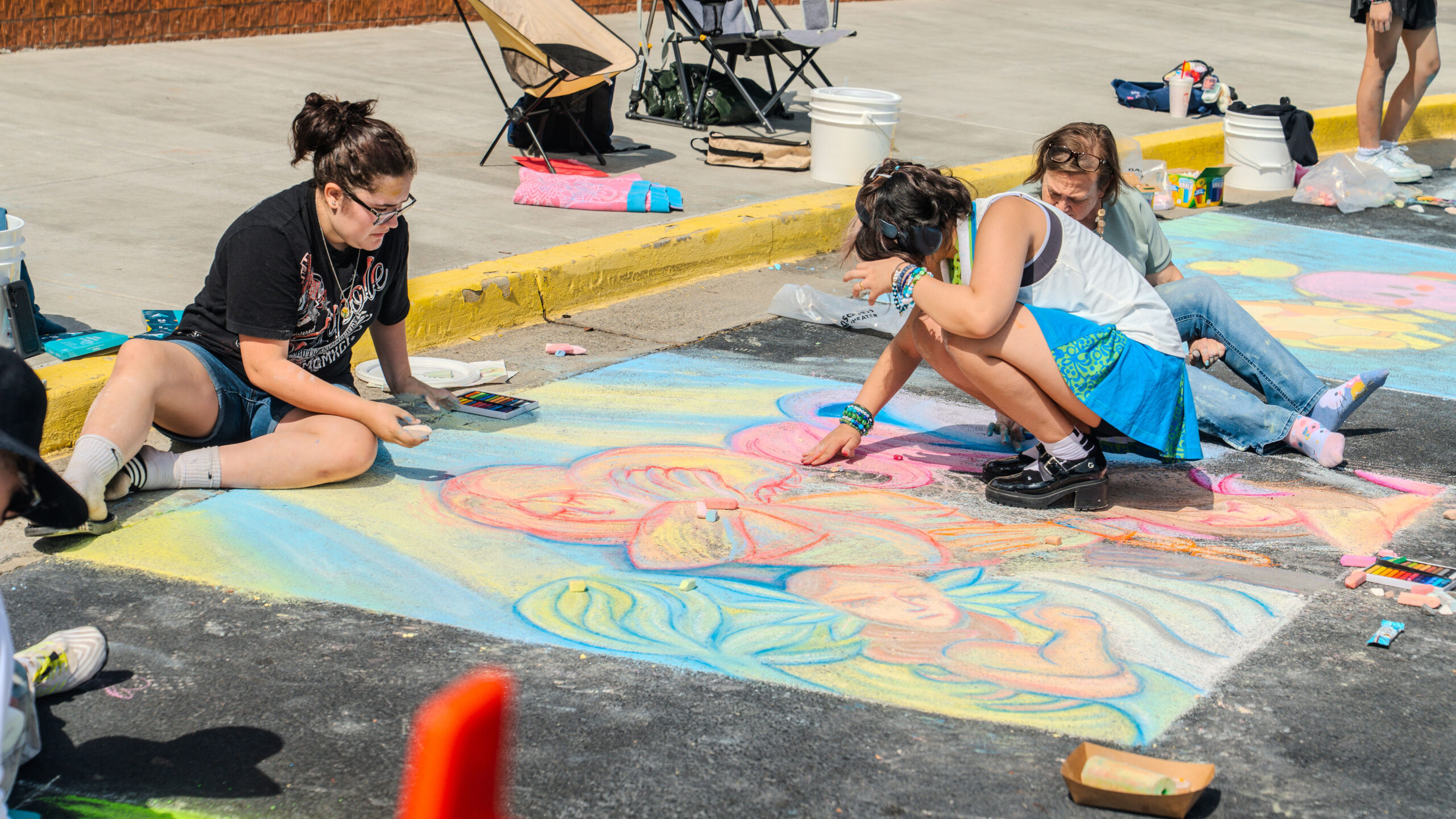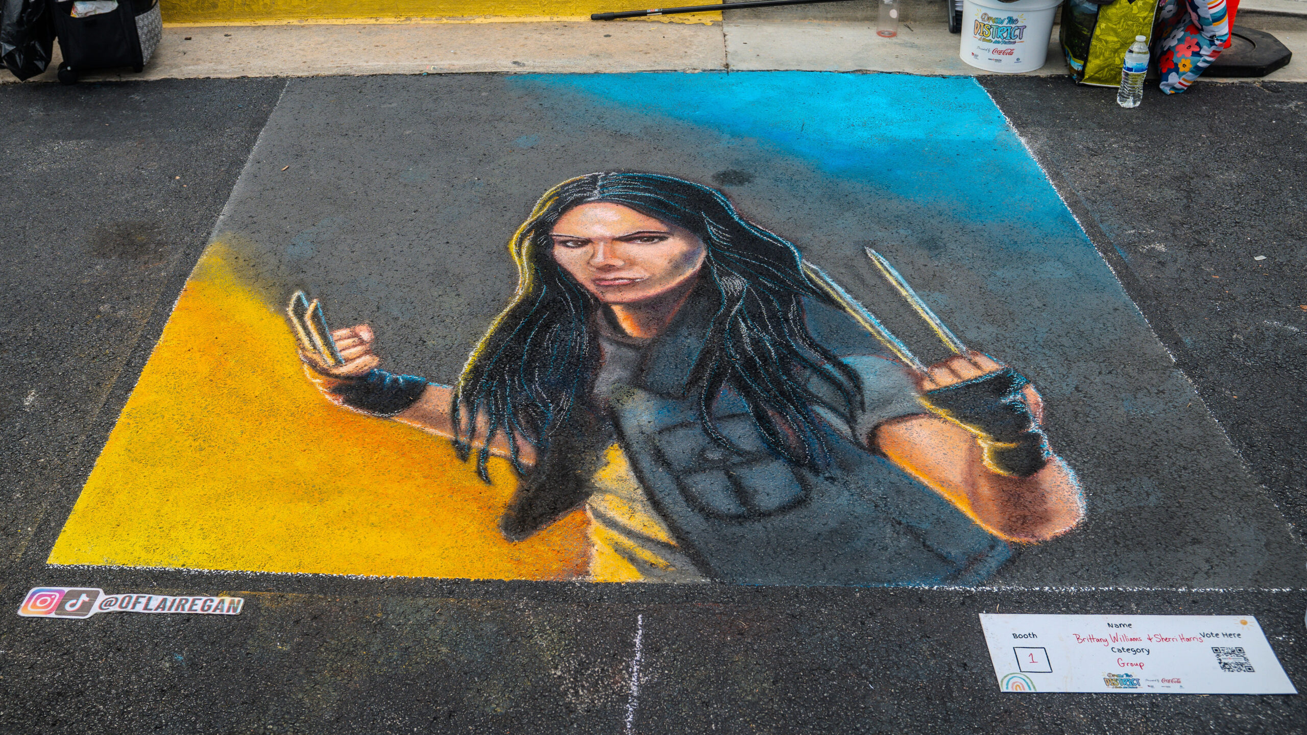 With over 35 artists competing in over 25 chalk entries as individuals, students, or groups, our judges enjoyed reviewing and scoring in the previous categories using a custom app built by local art advocate and event volunteer, Aura-Leigh Sanders. The People’s Choice category was determined by attendees scanning QR codes at each of the chalk squares to vote for their favorite. The Kid’s Choice category engaged our younger event attendees by having children drop a physical ticket in the bucket of their favorite chalk square.