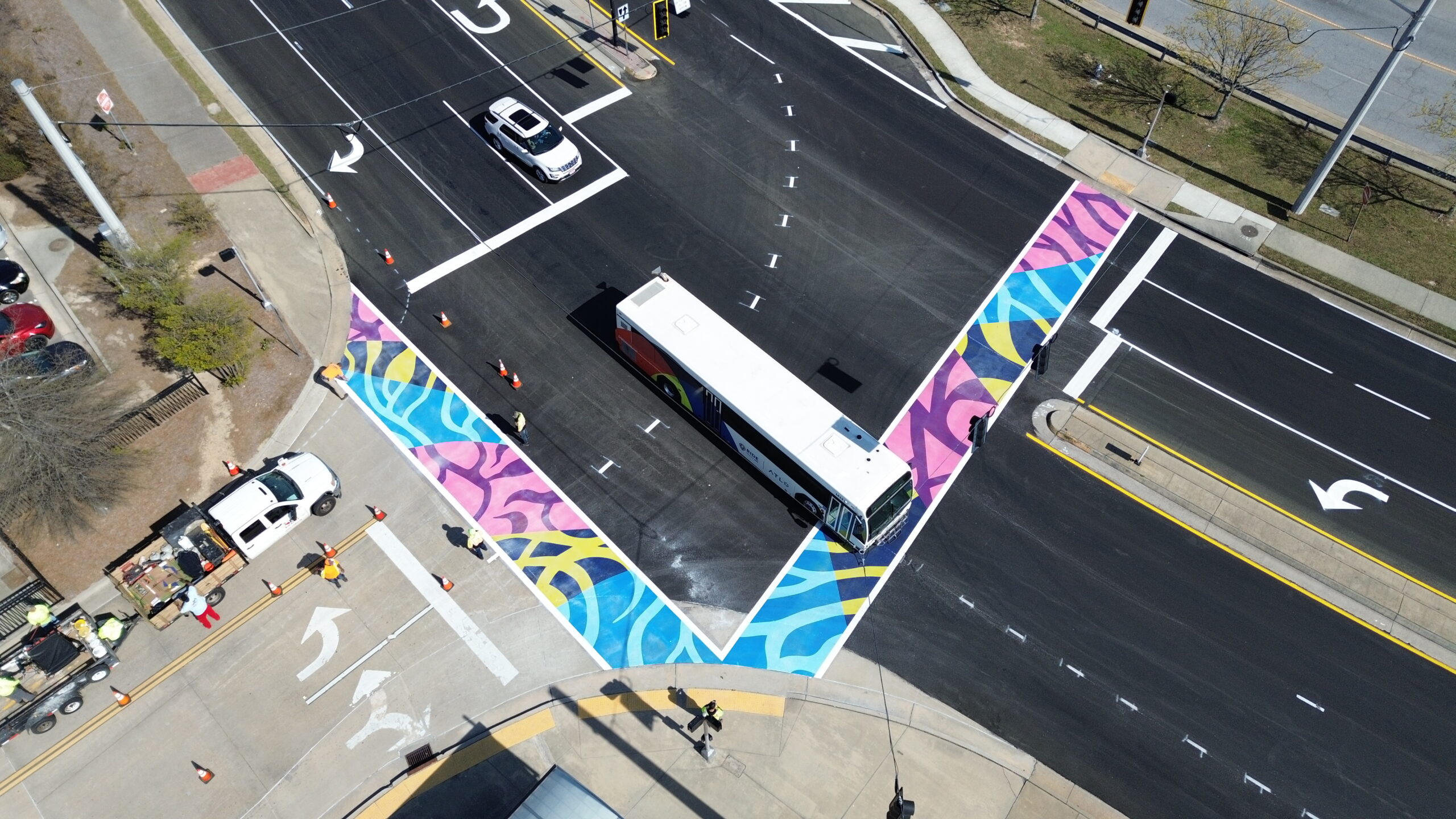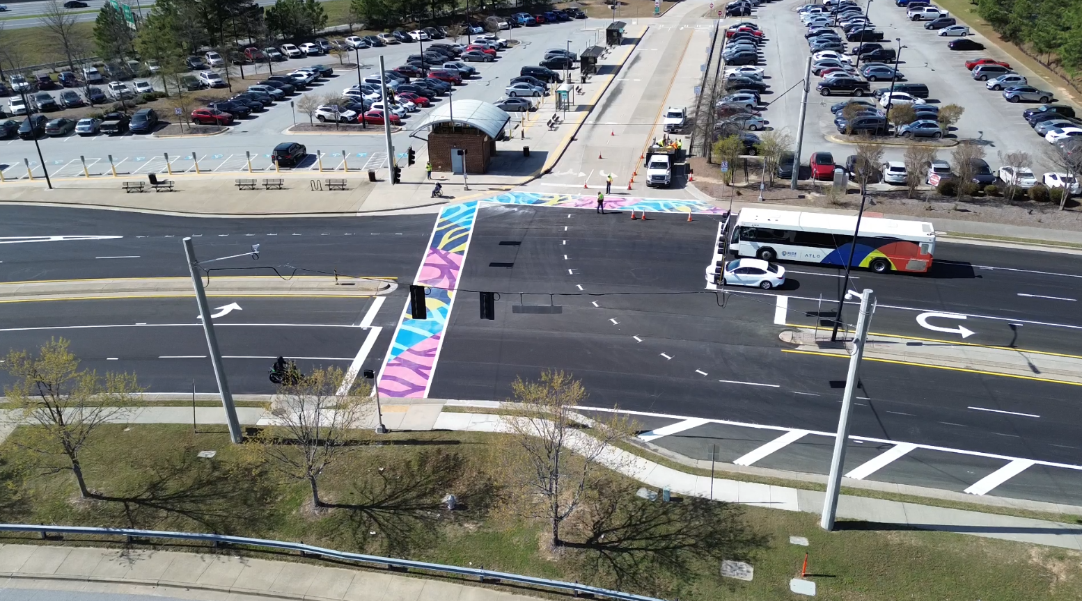 • Gwinnett County repaved this segment of N. Brown Rd. before the crosswalk installation, which enhances the durability and visibility of the artistic crosswalk