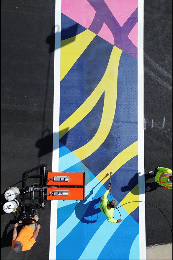 The CID installed 2 sets of artistic crosswalks, with over 1,600 sq. ft. of preformed thermoplastic material.